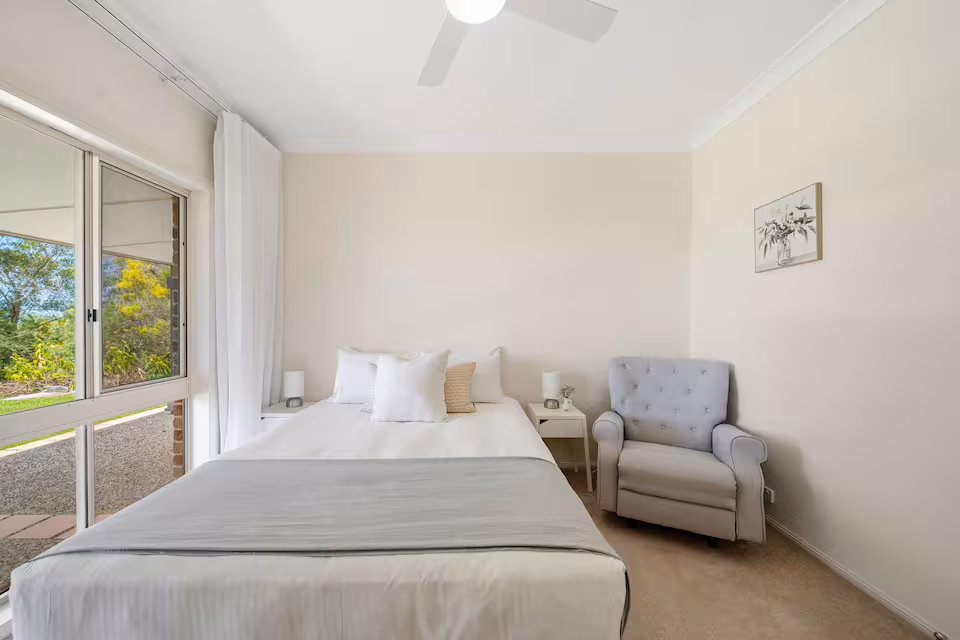 - Bedroom 5: Private guest retreat with queen bed, ensuite, living area, smart TV, and peaceful outlook.